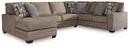 Classic, contemporary and cozy. With this sectional with chaise, relaxing in style is made easy. It takes a warm and inviting approach to versatile color, incorporating posh character into your space with menswear-inspired upholstery. Graphic accent pillows bring fresh flair to the look. Living room lounging has never been so comfortably chic.