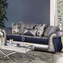Katarina Navy/Silver Sofa, 95"L X 37"W X 32"H, 180lbs.