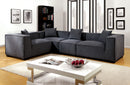 Padded in a gray color fabric , this corner sofa will complement any living room. Matching pillows are included.