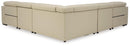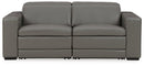 Truly putting high design into recline, this power reclining sectional with gray leather match upholstery proves that just because you’re a recliner doesn’t mean you have to look like one. Deceptively beautiful, its ultra clean-lined aesthetic is as cool and contemporary as they come. Low-profile back has a super swank look. When you need more support for your head and neck, the press of a button engages the Easy View™ power adjustable headrest, designed to let you lean back and still have a primo view of the TV. The zero wall design requires minimal space between wall and chair back, and indulgent pillow top seating gives an added layer of comfort.