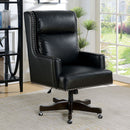 This office chair creates a professional, CEO level feel to your home office. The classic combination of leather and nailheads gives the room a bold "OOMPH" that typical office chairs lack. The breathable leatherette lets you work long hours without overheating, and the track arms give your elbows a great spot to rest while you pour over your task.