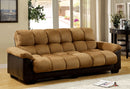 Brantford Tan/Espresso Elephant Skin Microfiber Futon Sofa, 87"W X 37 1/2"D X 36 1/2"H, 191.4lbs.