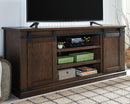 Add a big touch of country style to your living area with this extra large 70" TV stand. It’s visually appealing with the flexibility you need. Adjustable end shelves offer lots of storage, while the two stationary middle shelves are roomy for housing media equipment. Two sliding barn doors can easily be positioned as you desire. For an uncluttered look, slide the doors over the two ends and use those areas for hidden storage—what a deal.