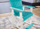 Raise the bar on outdoor living with this bar stool set. Crafted for style and durability, the counter height stool caters with sturdy armrests, an ample footrest, a high shell back and a waterfall wrapped seat for curvaceous comfort. The slatted design easily sheds rainwater. Adding to its appeal: a standout two-tone look that pairs a light turquoise and white for twice the interest.