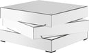 Bring home this Haven coffee table to add a distinctly modern look to your living room or den. This eye-grabbing coffee table from Meridian Furniture features a triple-stacked platform design in a square shape for a geometric look that's more like a piece of fine sculpture than the true utilitarian item it truly is. The surfaces of the table are mirrored, adding a light, airy touch to your space and giving it a beautiful aesthetic in contemporary decor.