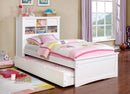 Display toys or organize bedtime stories with bookcase-inspired bedroom set. Variously sized shelves and drawers organize your little one�s favorite playthings while doubling as handy storage compartments. The add-on side bookcases are perfect for t he avid reader with their USB plugs that double as convenient charging stations. Don�t forget about the built-in headboard light that acts as a nightlight to scare nightmares away! This bed set is the perfect multifunctional and charming piece to dec lutter and organize your child�s room!