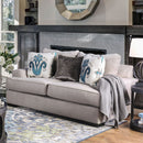 There�s no way you can�t be comfortable on this loveseat. The large padded track arms are perfect to lean against and the plush loose back pillows can be moved around to maximize your comfort. The large T-cushions are giving this loveseat a modern lo ok, but more importantly offer a supple seat. The included throw pillows add an injection of color and pattern to this piece.