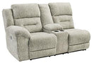 With its sumptuous comfort and designer style, no wonder this power reclining sectional is such a crowd pleaser. Looking for a new twist on neutrals? Then you’re sure to love how this power sectional’s stone-tone padded velvet fabric is delightfully different, yet sure to blend beautifully with countless color schemes. Rest assured, the one-touch power control with adjustable positions includes an Easy View™ adjustable headrest that lets you lay back and still have a primo view of the TV. Zero-draw USB plug-ins at your fingertips keep you powered up as you chill out.