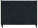 Snuggle up to a pet or other loved one in this richly upholstered Eva cream velvet queen size bed for the ultimate in rest and relaxation. The wing back headboard has cushioned vertical deep channel tufting, and both the side rails and footboard are upholstered too for your comfort. Tapered black wood legs match the upholstery and support this contemporary bed, elevating it sufficiently that you can store items underneath.