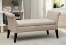 Elegant and minimal design defines this beautiful tufted fabric bench with curved arms and under-seat storage. Two colors available.