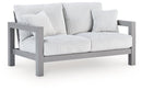 Indulge in luxe outside living without sacrificing longevity. This outdoor loveseat combines on-trend texture with a sleek aluminum frame. Lounge poolside or on the porch—the comfy cushions are a chic spot for you and a partner to soak up the sun. And with cleanable, UV-resistant Nuvella® fabric in a showstopping corded look, style and durability go hand in hand.
