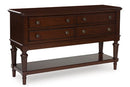 Serve up elegance and poise with this dining server. Its traditional silhouette is detailed with reeded legs for added opulence. Smooth-gliding drawers tuck away linens and other dining accessories when not in use. An open display shelf is the perfect host for decorative accents. From everyday meals to hosting family and friends, this server elevates your dining experience with classic beauty.