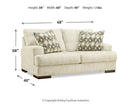 Easy on the eyes and irresistibly comfortable, this loveseat is covered in luxurious chenille microfiber in a light, neutral hue that blends beautifully in a room. Wide track arms have a contemporary look and plush cushions cradle you comfortably. Textured accent pillows in complementary colors add subtle contrast.