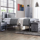Inspire a bedroom decor wreathed in the designs of the steam age. A full metal constructed bed features a corrugated panel headboard and footboard for a minimalist, re-purposed look. The case goods feature washtub style drawer pulls and raised panel drawer faces. A matching bench adds a touch of fabric and softness to the collection. Embrace your love for raw materials and handsome rugged designs.