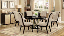 Ornette Espresso Round Table, 60"DIA X 30"H, 169.4lbs. Lighten up any dining room without compromising formal elegance! This lovely dining table brings traditional and contemporary together to create an chic piece that will really dress up your dining space. Gently curving legs come together to create a double pedestal base that pairs beautifully with the spacious espresso table top. Features: Contemporary Style Solid Wood/Wood Veneer/Others Espresso & Champagne Finish