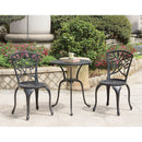 Redesign your backyard for a soothing outdoor escape with this bistro table set.Floral patterned designs blend perfectly with an outdoor aesthetic, providing long term comfort with breathable backs and contoured seats. Enjoy a coffee or cocktail on the sleek round table while cabriole legs add smooth curves to the airy design.