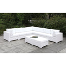 Somani Light Gray Wicker/Ivory Cushion U-Sectional + Coffee Table + End Table, , 407lbs.