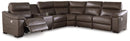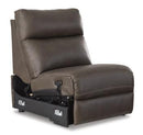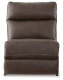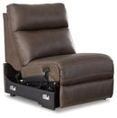 Easy on the eyes and incredibly comfortable, this high-end power reclining sectional will upgrade the look and feel of your living room. Its automotive-inspired leather and faux leather keep luxury right on budget. The modular design allows pieces to be grouped together in a variety of ways. No matter how it's arranged, this sectional is just the right touch for reclining and relaxing in style.
