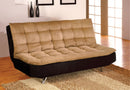 Mancora Tan/Black/Chrome Microfiber Futon Sofa, Camel & Black, 70 1/2"W X 38"D X 35 1/2"H, 112.2lbs.