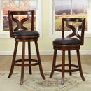 BALTIC 29" Swivel Bar Stool, 24"W X 24"D X 43 1/2"H, 26.46lbs. This swivel bar stool comes with a Pierced Splat back and finished in a dark cherry for an elegant look.