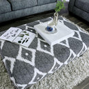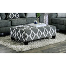 Basie Gray Ottoman, 48 1/2"L X 34"W X 18 1/2"H, 56lbs. A slightly modern color palette gives this sofa collection a hint of contemporary charm that makes it perfect for a sophisticated urban aesthetic. The splashes of white across the modern art inspired patterning serve to highlight this sets air of ele gance and quiet class. Features: Medium Density Foam Box Cushion Seating Block Feet