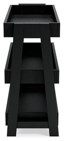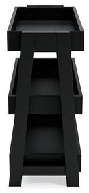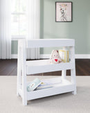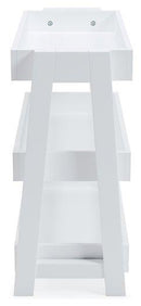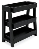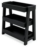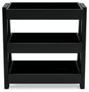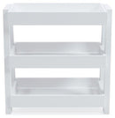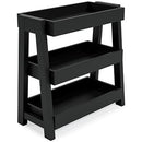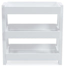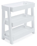Display your child's decor with simple style on this shelf accent table. Constructed of solid and engineered woods in a white finish, this accent table blends easily with their existing living room aesthetic. Three tray shelves can be used to show off keepsakes and collectibles, or to keep TV remotes handy.