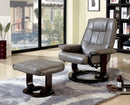 Available in either gray or brown, this swivel accent chair comes in a padded leatherette seat and ottoman.