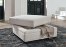 Sit back and kick your feet up in style on this ottoman with storage. Its clean-lined design pairs well with your casual and transitional furniture. The soft, tight woven texture and chalky beige hue are so in the now. Have unexpected guests? Simply lift the top and throw in clutter for a quick clean-up.