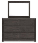 Find serene simplicity in the clean lines and dark neutral tones of this dresser with mirror. It’s a sincere approach to modern elegance, giving you high style at a great value. A sleek hardware-less design creates a fuss-free look. Short on storage? This dresser’s smooth-gliding drawers keep clothes and clutter neatly tucked away.