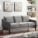 KASSEL Sofa, 75"L X 31"W X 34 1/2"H (SEAT HT: 19", SEAT DP: 21 1/2"), 105.6lbs. For all intents and purposes, the Kassel collection is a simple set; but oftentimes, the simplest options are not only the best, but also the most beautiful. Take for example the square cushions of this sofa--they are upholstered in flannelette and designed to fit perfectly side by side, providing comfort alongside the matching loose back pillows. The simple curves of the arms provide a silhouette that's decidedly modern. The walnut-finished legs are simple, too--rounded and tapered ever so slightly at the tip to provide a sleek-looking foundation to this unassuming sofa.