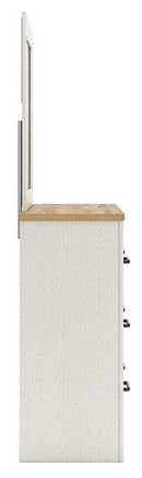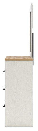 Create a serene countryside retreat with this dresser and mirror set. The two-tone design effortlessly adds farmhouse style, while framed drawer fronts with pewter-tone handles enhance its charming appeal. Looking for furniture that offers storage and a peaceful escape from your daily routine? This set is just what you need.