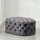 Bring a touch of creativity to the room with this oval shaped ottoman. It's comfortable enough to double as a bench when you have a big gathering. The all over button tufting gives the piece a light elegance that helps elevate this often overlooked living room accent.