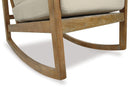 This accent chair is a natural beauty. Neutral fabric on light wood tone frame expresses a humble and inviting quality. Sleek rocking chair profile is a worthy addition to a reading nook or sitting area. And with cushions so plush, you’re in for a relaxing time.
