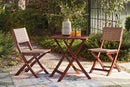 Whether breakfasting on your balcony or soaking up the sun poolside, this table and chair set brings a relaxed vibe to your outdoor decor. The frame's brown finish pairs with handwoven resin wicker, effortlessly suiting a variety of styles. The foldable design adds another layer of functionality. Crafted with a universal appeal, this set invites you to sit down and stay awhile.