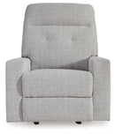 What happens when value meets plush comfort and contemporary design? This rocker recliner is born. Ample cushioning in all the right places makes this the best seat in the house, while updated track arms give a chic modern vibe. Pull tab reclining lets you kick back and unwind with ease. Covered in easy-to-clean Next-Gen Nuvella™ fabric, this recliner is perfect for nurseries and active households.