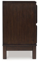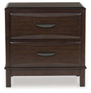 A rich, metropolitan finish. Unbeatable function. With this nightstand, it’s a breeze to create a casual contemporary hideaway full of style and convenience. It combines thoughtful craftsmanship and handy storage, with smooth-gliding drawers to help keep bedside essentials organized. Metal bar pulls complete the look with added flair.