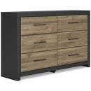 - Dresser with two-tone finish (matte black finish; rich honey brown finish over replicated walnut grain with authentic touch)