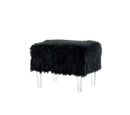 Add some fur to a room to give it instant textural depth. These ottomans are cruelty free and made from faux fur to add that visual spark you're looking for. Clear acrylic legs blend into your room decor offering increased flexibility of use.