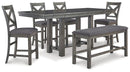 Going gray in the best possible way. This dining package wows with an utterly on-trend smoky gray finish. Just a touch of distressing helps it fit right in with your modern farmhouse decor.